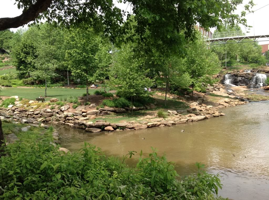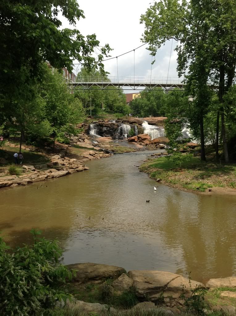I am currently attending the South Carolina Foster Parent Conference in Greenville, SC at the Embassy Suites. We arrived in town at 7am.. I had been under the presumption that we could check in early into our hotel rooms before the first class at 9. Well.. I was incorrect. And well, I am one of the few foster parents that did not ask someone to watch my children for the weekend. Hu Hu.. so yeah, you see my dilemma!? I thought I would just check them into the room and they could just chill in the pool or watch the tube. (I do have a responsible 17 year old, btw). Fortunately, Greenville has an awesome downtown atmosphere with a great park full of water and rocks and other boy-friendly stuff! So I dropped them off at the park.. told my teen that I owed him big time, and headed over here for my first session.